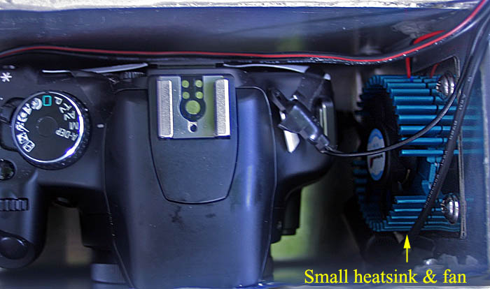 Placed a small 12 volt heatsink/fan inside to circulate cold air: