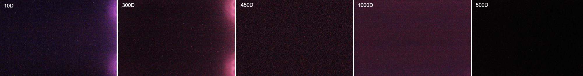 Canon 10D, 300D, 450D, 1000D & 500D Dark Frame Comparison:
