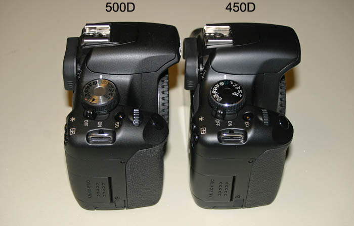 The 450D and 500D have the same exterior dimensions and other than the dial style difference and four tiny hole pattern for the 500D's speaker, would be difficult to tell apart. The 1000D is the same height and width but is a little shorter in length and has a smaller LCD display.