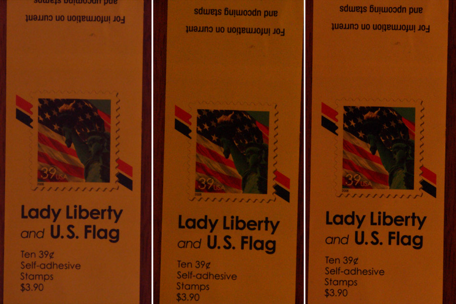 For the image comparisons below, the original RAW images were converted to TIF files in Canon's Digital Photo Professional and then in Photoshop all three were resized to 900X600 pixels, then cropped to 300X600 pixels at center to fit on the display for comparison.