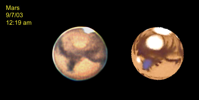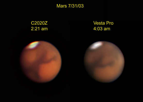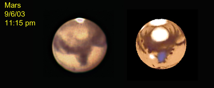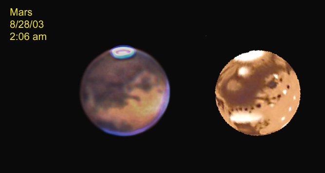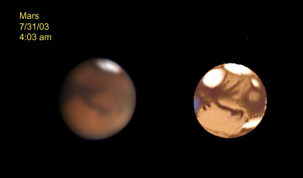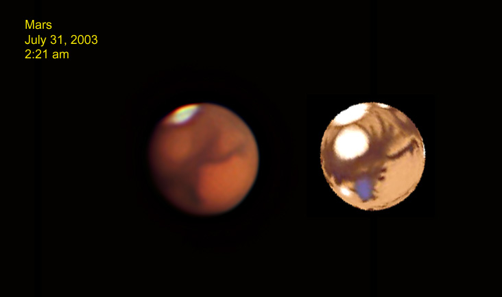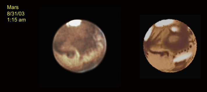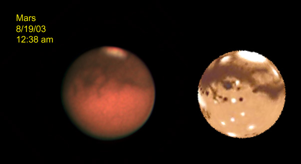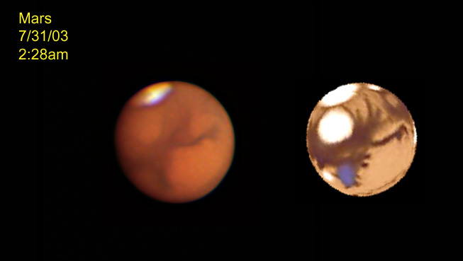 For images of Mars taken at Cherry Springs 6/28-29/03 with an Olympus C2020Z with a 20" Starmaster CLICK HERE