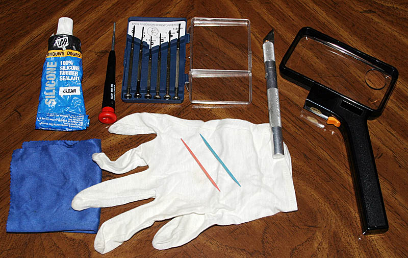 Comment by Skyler: "A really handy item was Nitrile gloves. They keep the insides of the camera clean w/o leaving finger oil marks on components. Skyler also recommended using surgical forceps that have long thin noses and work great at grabbing those thin film conductors." See MODIFIER COMMENTS for his advice.