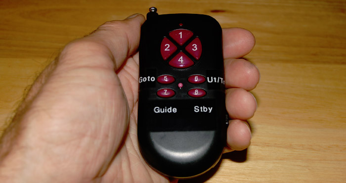 Wireless "Ground Control" Remote Controllers have eight control buttons that function in the same manner as the original Sky Tracker wired hand controller:
