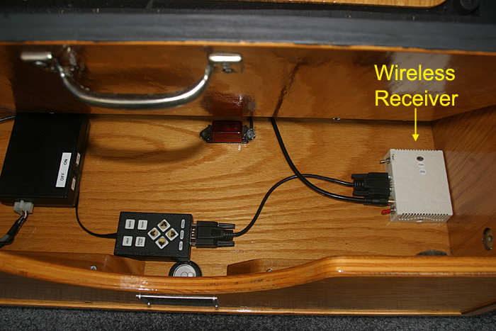 Price: $275 plus $20 shipping, UPS ground insured continental United States only. You will need to send me your Skytracker Hand Controller (only) for modification. The modification involves the addition of a female DB9 connector. Please email or call for shipping instructions and scheduling the modification. The modification can be completed in one business day for quick turn-around and delivery of the complete wireless system. A one (1) year warranty is provided.